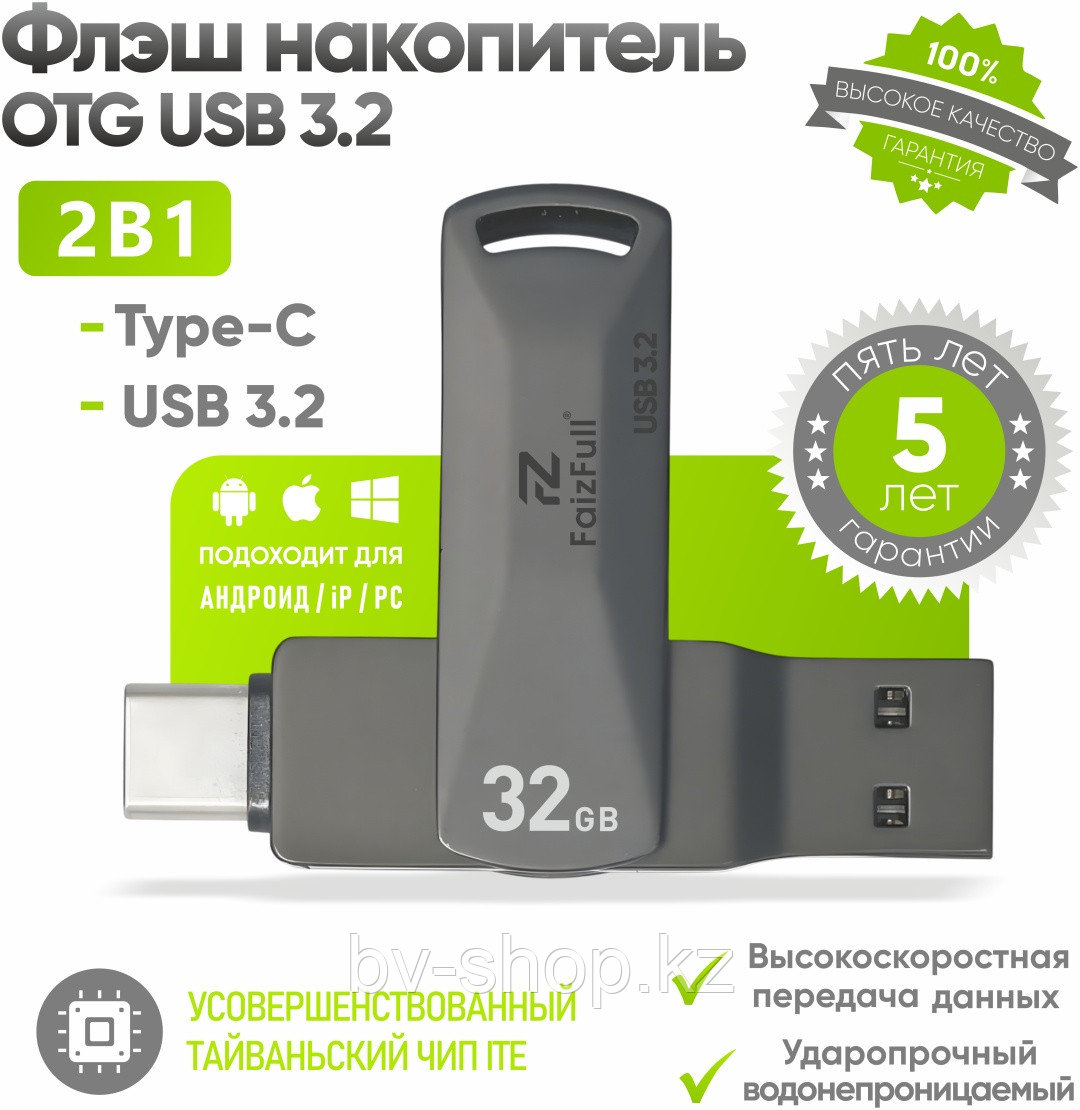 📱💻 USB флешка FaizFull 2-в-1 USB 3.2 + Type-C